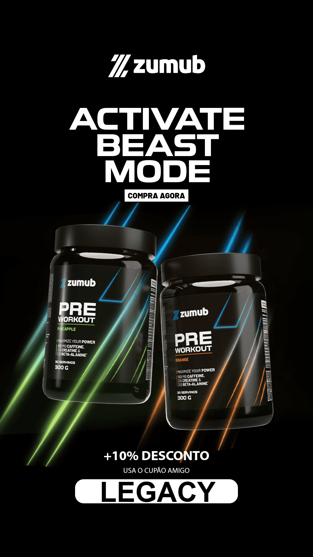 Utiliza o cupão amigo “LEGACY” em todas as tuas compras e descobre o poder de treinar, nutrir e evoluir com o Espírito Legacy.